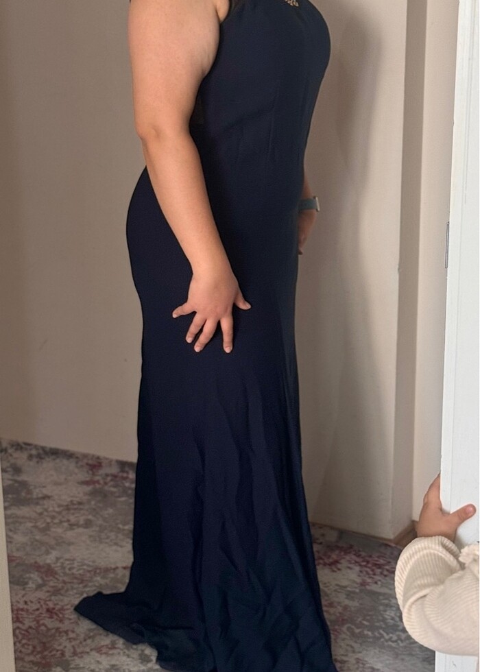 Elbise bir kez giyildi balık modeldir kusuru yoktur. Kuru temizleme yapılmamıştır. Fiyat ona göre ayarlanmıştır rengi koyu laciverttir