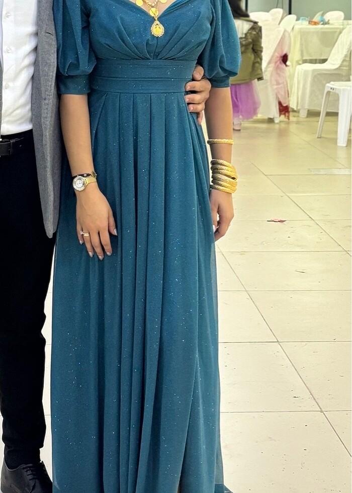 1 kere giyildi defosu bulunmamakta yırtmaçlı ister omzu açık ister kapalı giyinilebilir göğüs arasında dantell vardı kapattırdım isterseniz açtırabilirsiniz