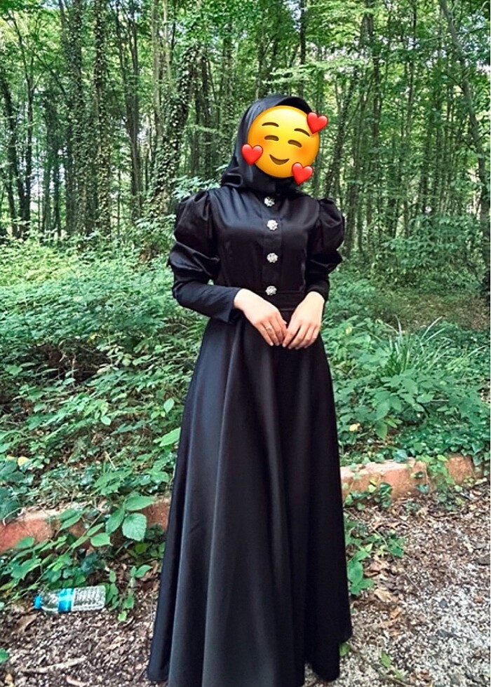 Siyah taşlı saten abiye balon kol 36 beden belden bağlamalı