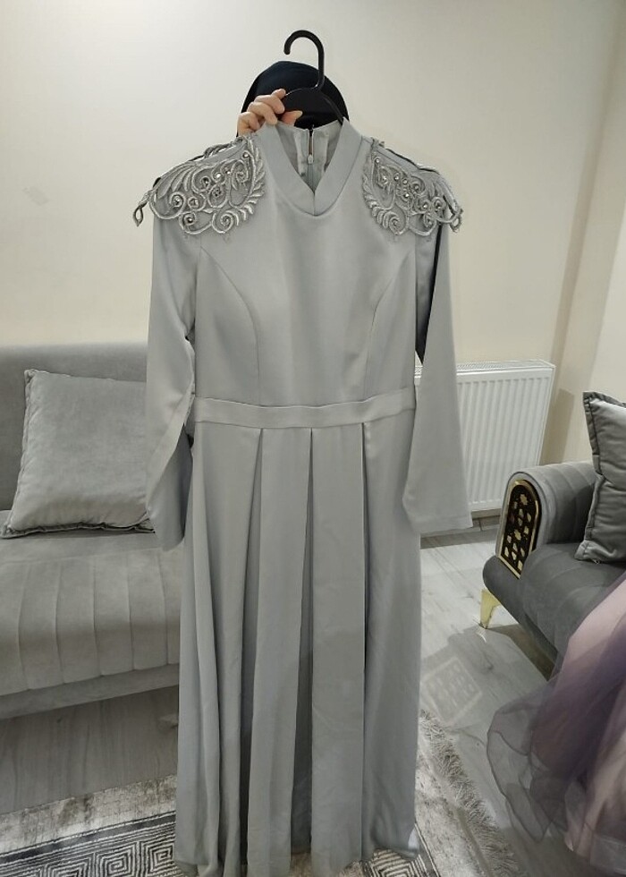 2 kez giyildi. 40 bedendir. Renk Gri. Şalı ile beraber gönderim yapacağım.
