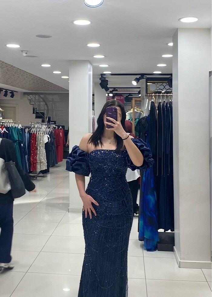 Lacivert payetli abiye