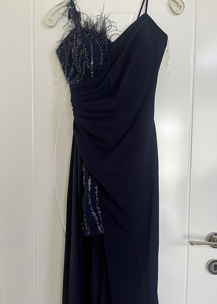 Askılı abiye sadece bi kez üç saatliğine kullanıldı o kadar arkası uzun askısı taşlı önü mini drape detaylı m beden
