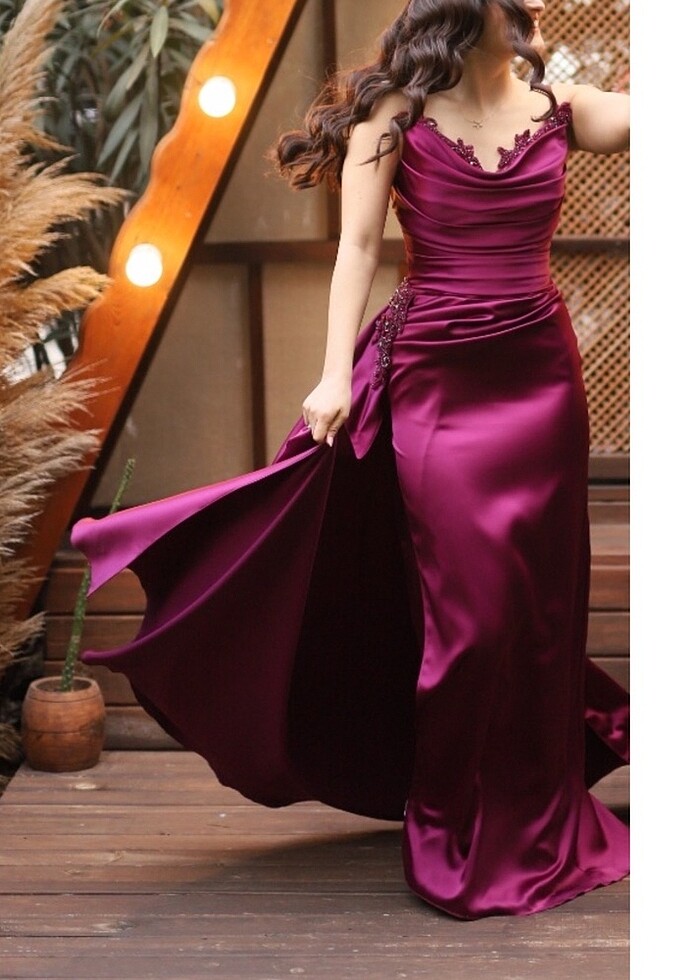 Bir kere giyildi fuşya rengi 34 beden abiye