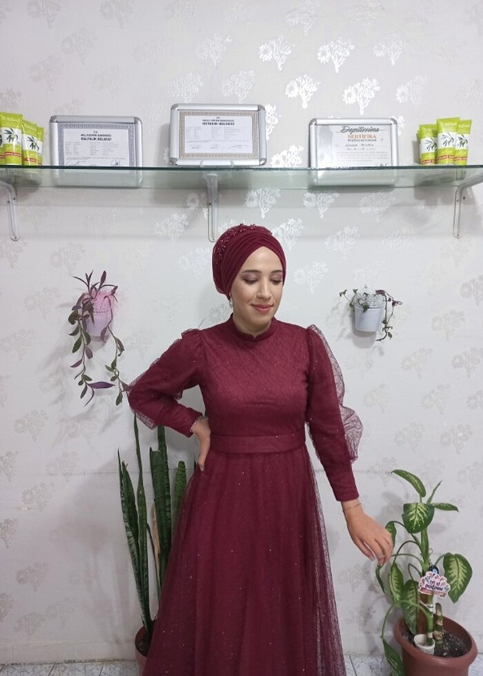 Bir iki kez giyildi 40 beden .bordo rengi tül