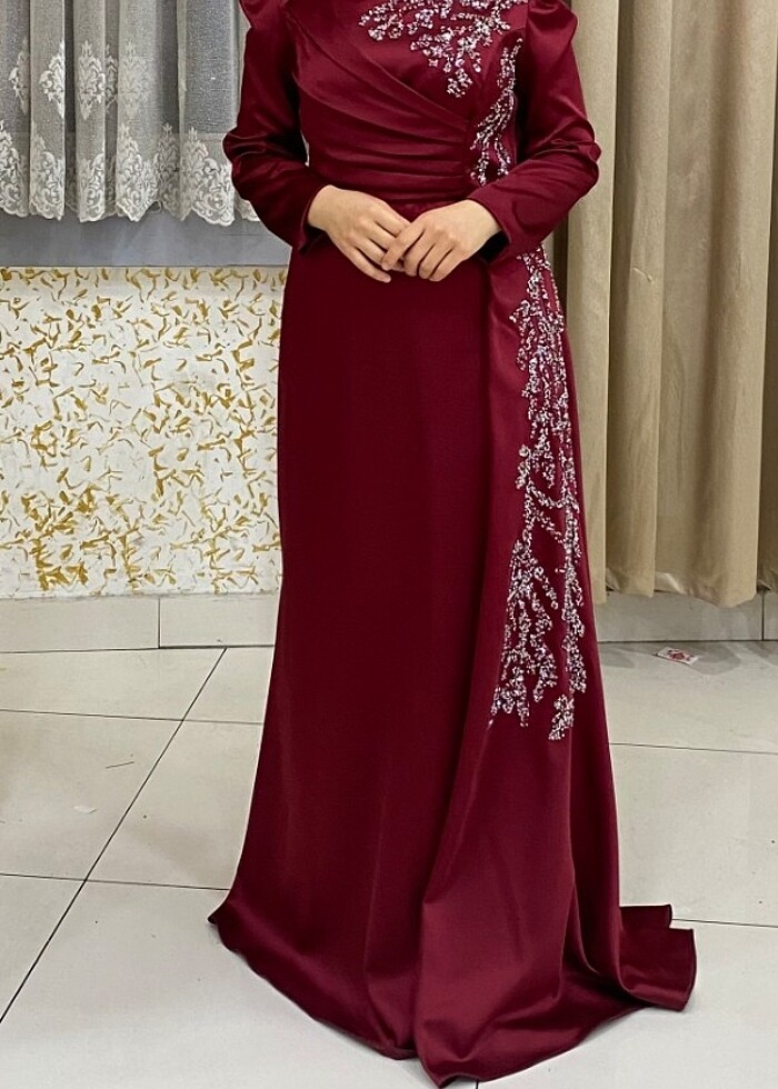 40 beden Balık kesimli saten abiye Aşağı kadar işlemeli 1 kez kullanılmış temiz abiye