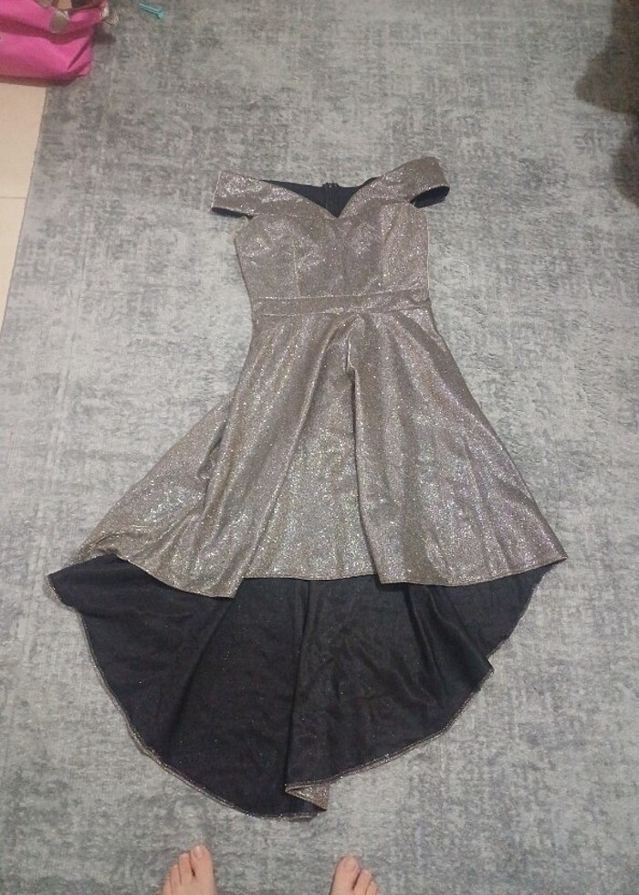 38 m beden abiye 1 kez kısa süreli giyildi sorunsuz deformesiz altın renk gibi simli önü kısa arkası uzun model şık abiye