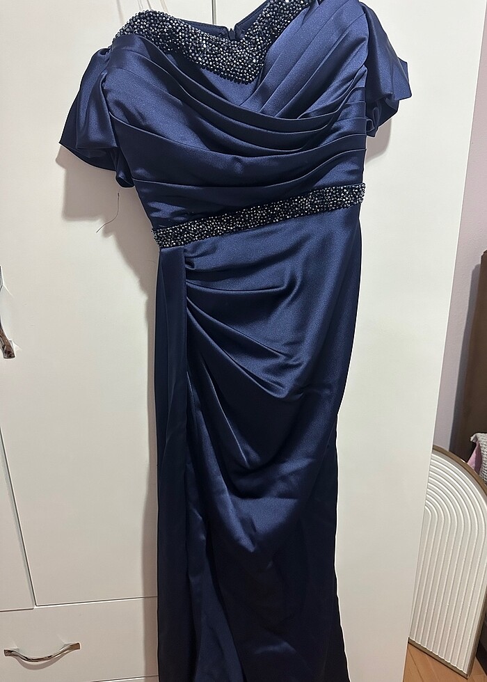 Lacivert taşlı yırtmaclı 38 beden abiye