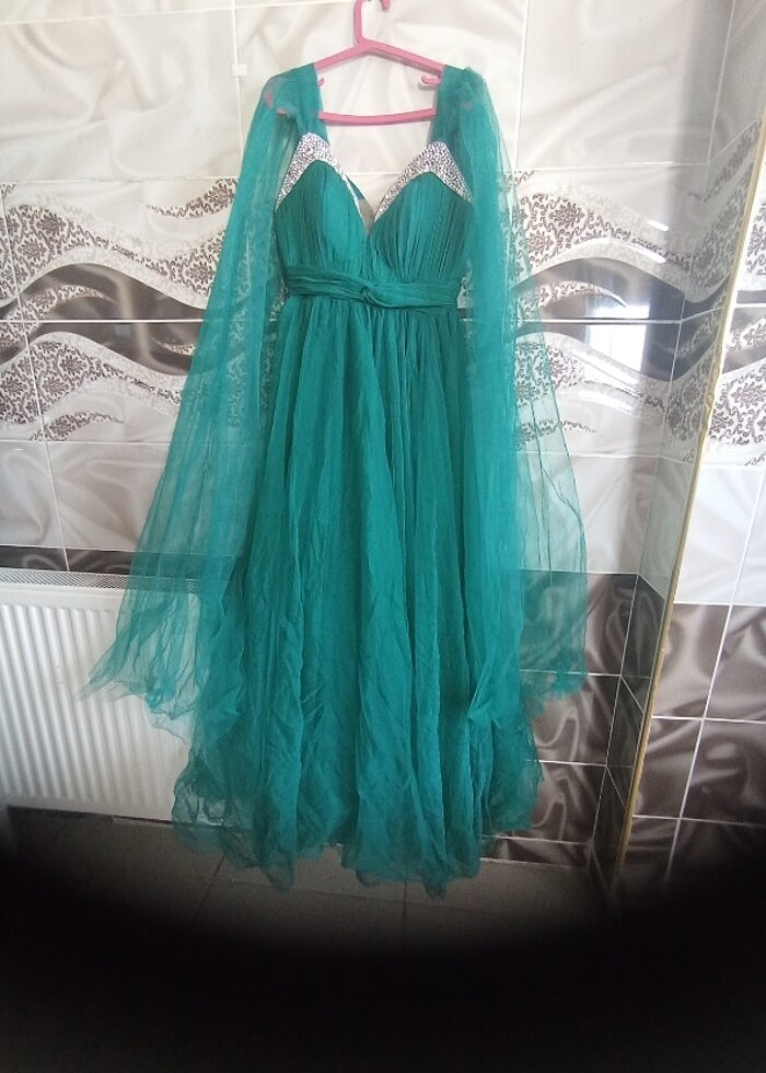 Yepyeni sadece 4 saat giyildi. Kollarındaki pelerinler çıkabiliyor ben kendim taktirmistim. Bedeni 42 hamile iken almıştım ama kalıbı salaş olduğu için m beden bile giyebilir ve çok güzel durur.