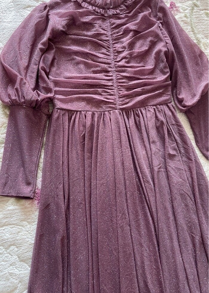 Bir kere kullanıldı hiçbir sorunu yoktur. 44 beden . Kolu balon şeklinde inen abiyeye hava katan bir detayda. Üst kısmı büzgü model belden aşağı kısım salaş gidiyor. Ciddi alıcılar makul fiyat talebinde bulunabilir