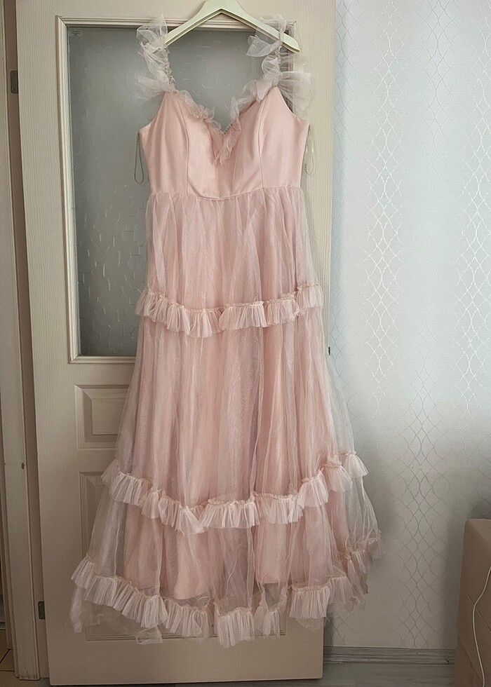 Sadece 1 kere giydim. 2 yıl önce 5 bin civarı bir fiyata almıştım. Açık Somon rengi fotoğrafta gözüktüğü gibi. Fiyat tekliflerinizi mutlaka belirtiniz