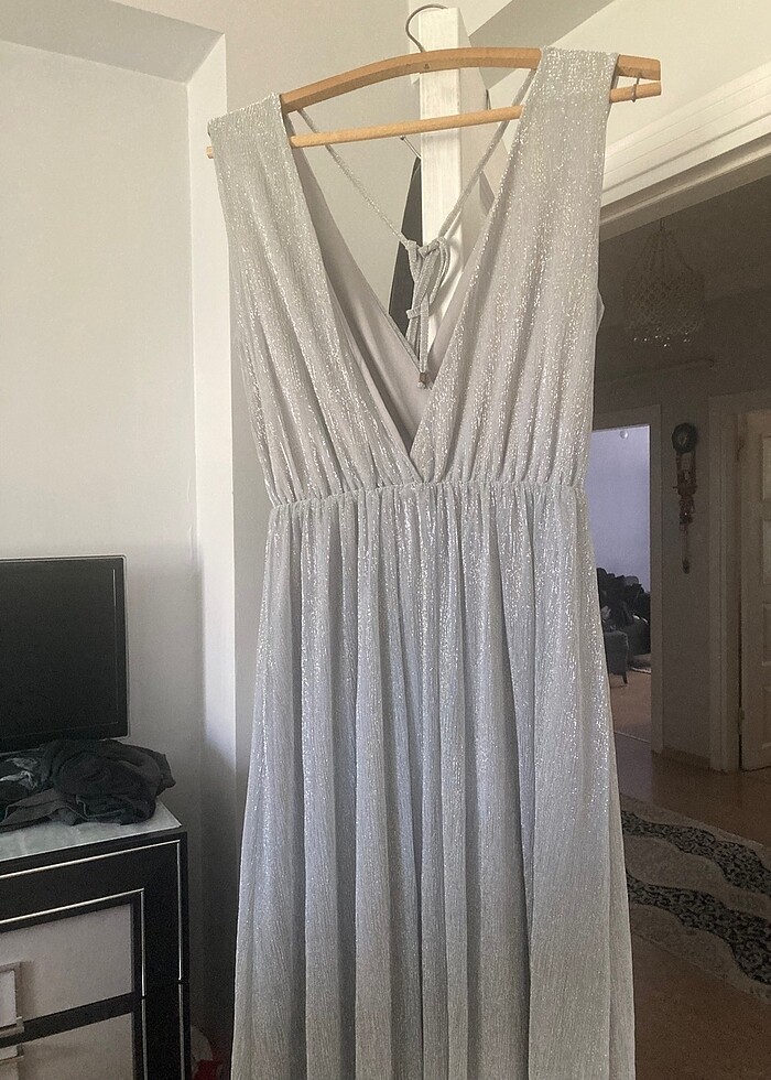 Mezuniyet elbisesi gri simli beli lastikli m l uyumlu