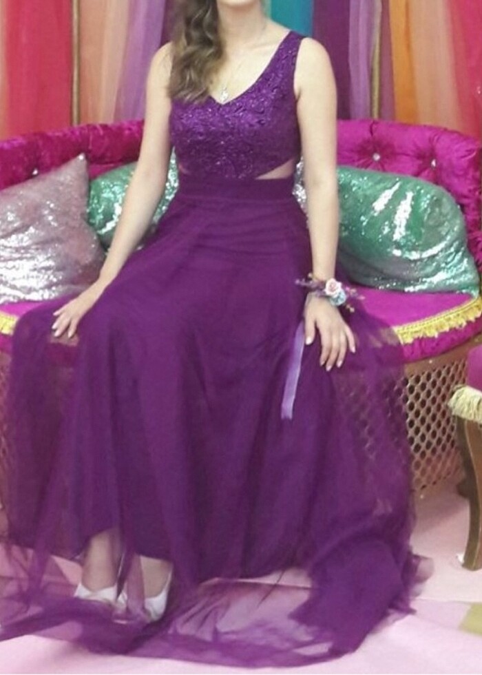 Mürdüm rengi tül abiye. Çok rahat ve şık. Sadece 1 kere giyildi. 36 beden. Tertemiz.
