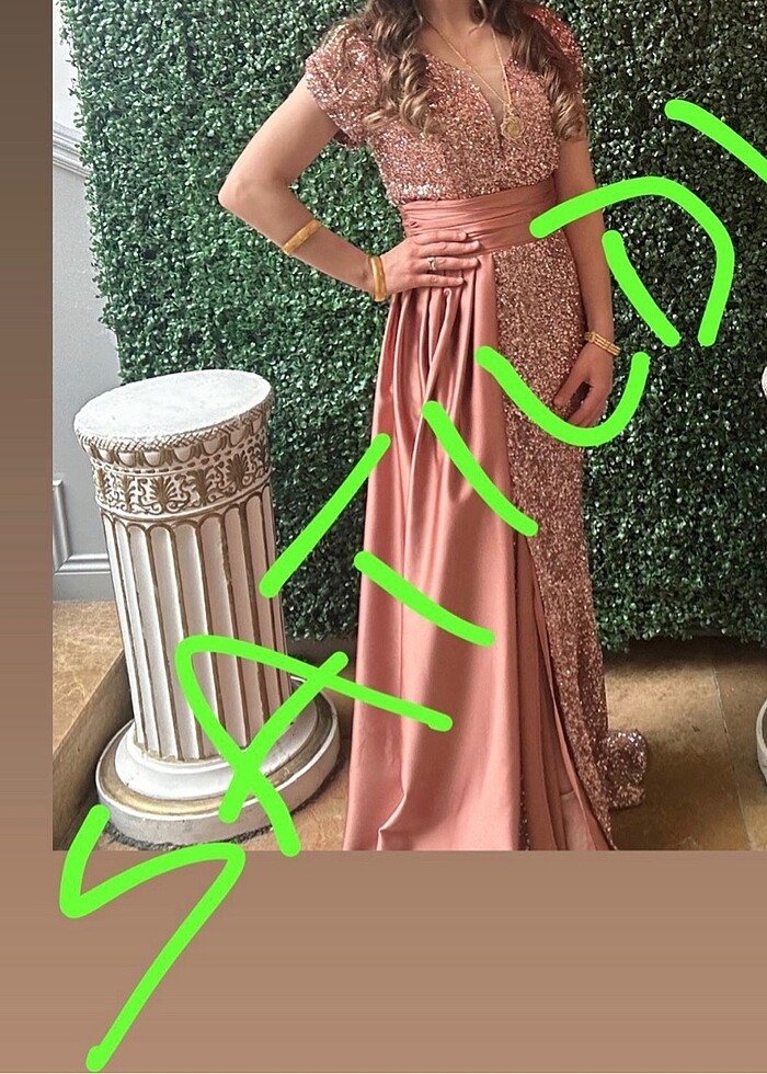 Paletli saten detay abiye elbise sadece birkez giyildi hiç bir deforması yoktur