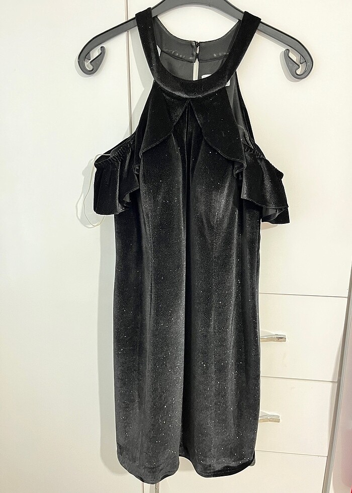 Bir kez giyildi halter yaka simli abiye