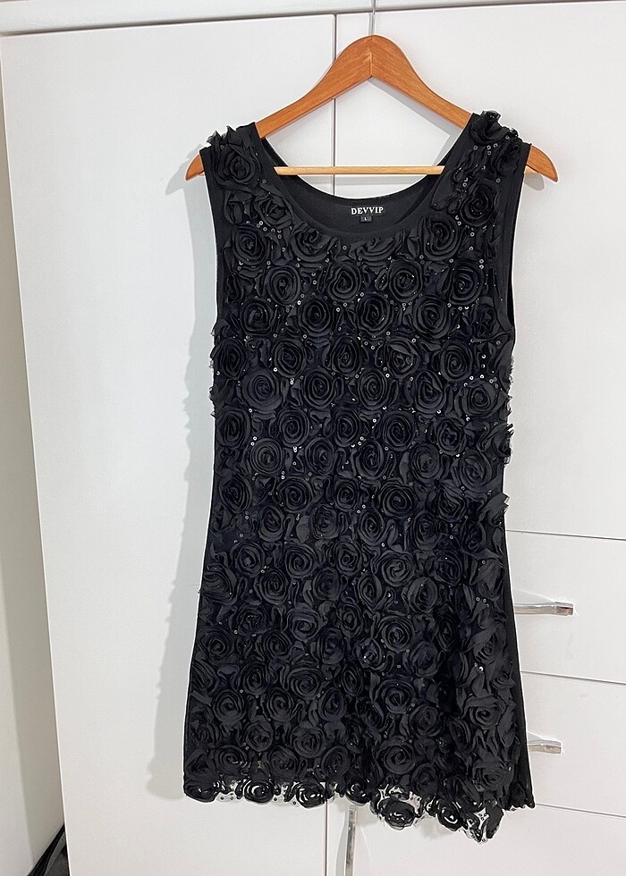 Gül işle eli pullu siyah abiye az kullanıldı