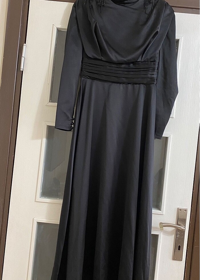 Siyah uzun saten abiye 38 beden