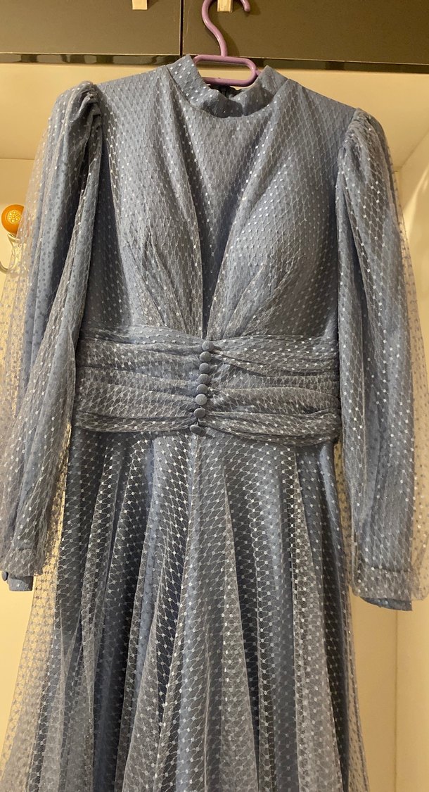 Ürün bir kez yakın akraba düğününde giyilmiş olup herhangi bir hasar mevcut değildir . Işıltılı , bel ve kol detaylı , kabarık bir modeldir. Manken 160 cm , 48 kg