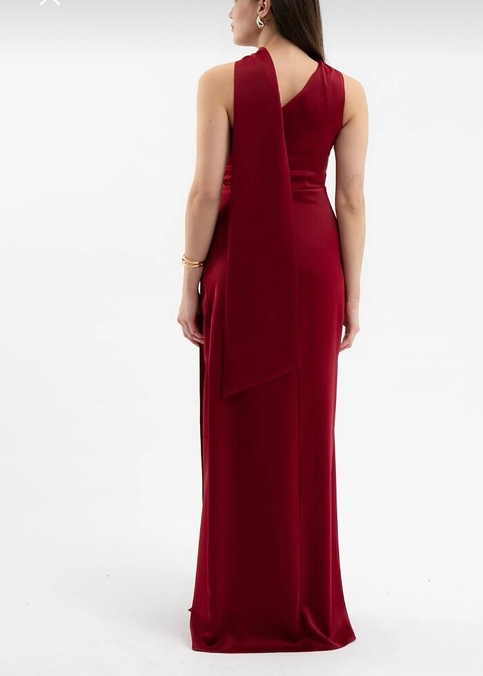 40-42 beden uyumlu bir defa giyildi kadın bordo fular yaka yırtmaçlı abiye