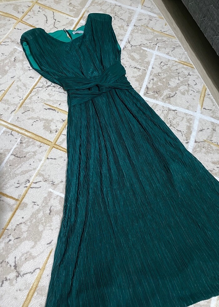 yeşil abiye sıfır kol ve vatıkalıdır