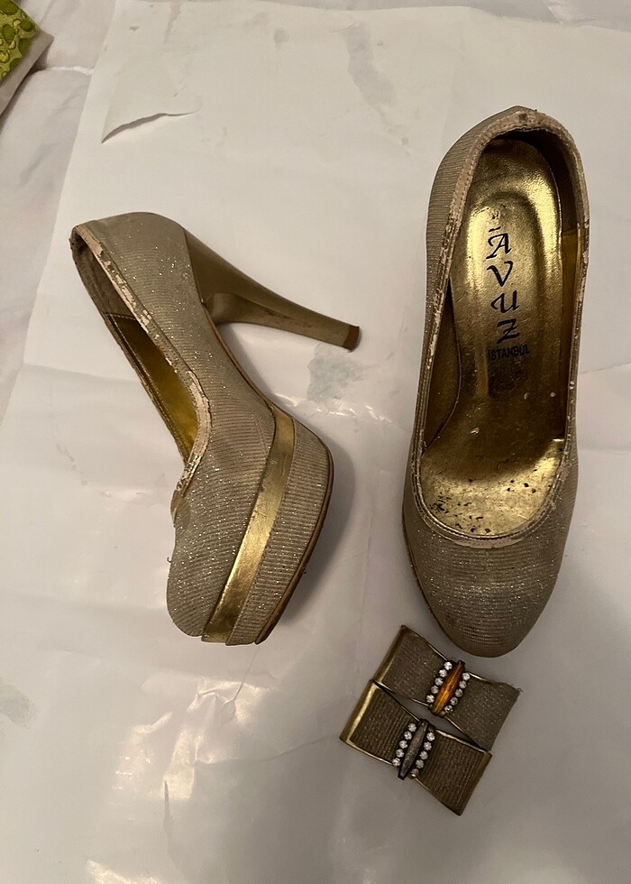 Altın rengi abiye ayakkabı