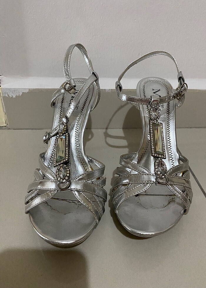 Topuk uzunluğu 8.5 cm bir kere giyildi gümüş renkte