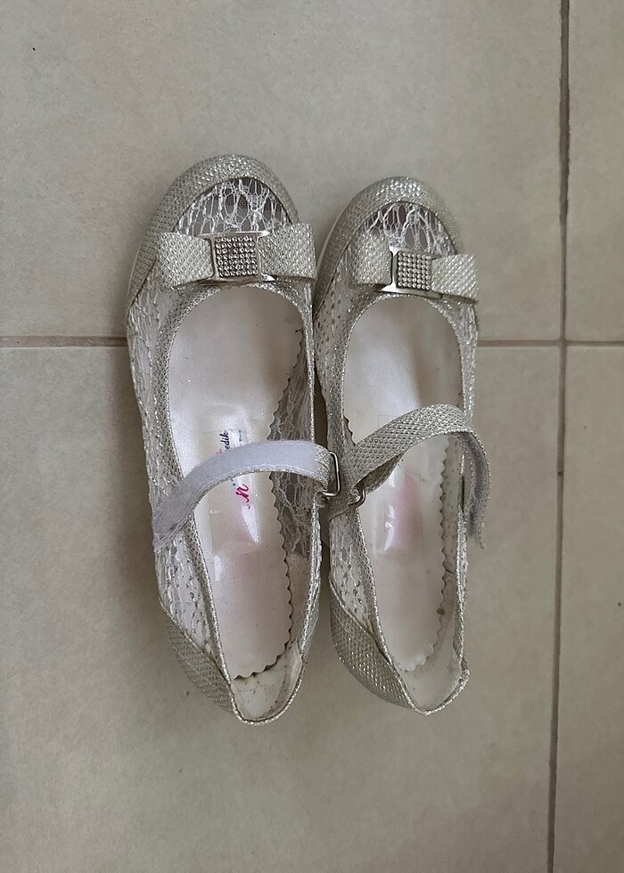 Az giyilmiş, beyaz tül, abiye şık ayakkabı