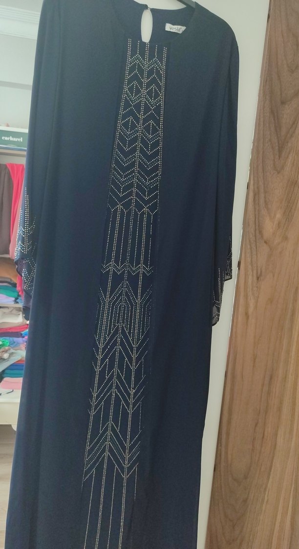 Abiye Boncuk İşlemeli Mavi Uzun Elbise bir kere kullandim