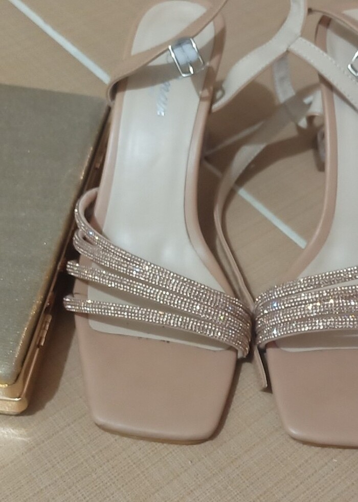 Sadece 1 kez giyilmiş abiye ayakkabı ve çanta gold rengi