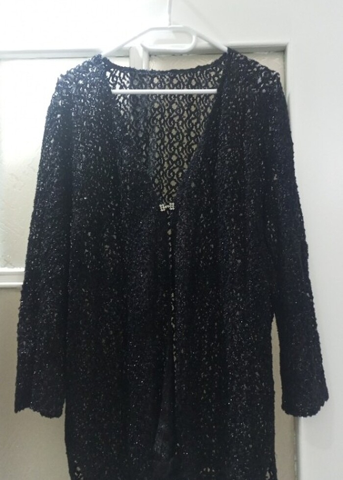 Simli dantel görüntülü, iç gösteren (transparan) 50 beden siyah ceket
