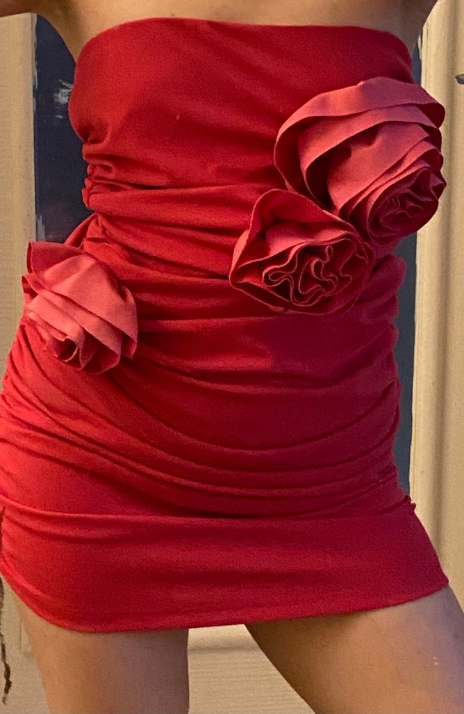 Drapeli gül detaylı elbise hiçbir sorunu yok bana büyük geldiği için arkadan bağlayarak çektim fotoğraf. Eyyo Atalier.