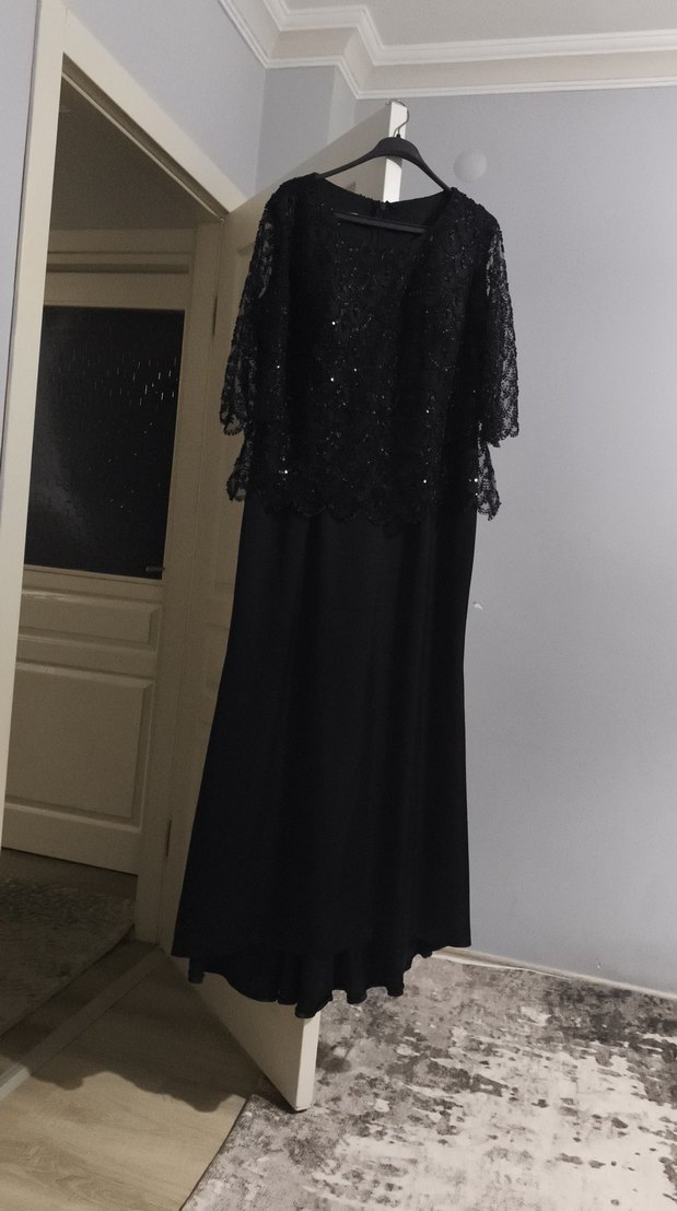 siyah boncuk işlemeli abiye elbise.yeni aldım ve 1 kez giydim bele oturan boyu uzun gösteren harika duruşu olan bir elbise.alan çok memnun kalır.bedeni 50 ama 46 giyen birine uygun.abiyelerde kalıp küçük olduğu için.hiç bir kusuru yoktur.fiyat sondur.aldığım fiyata göre çok uygun satıyorum.