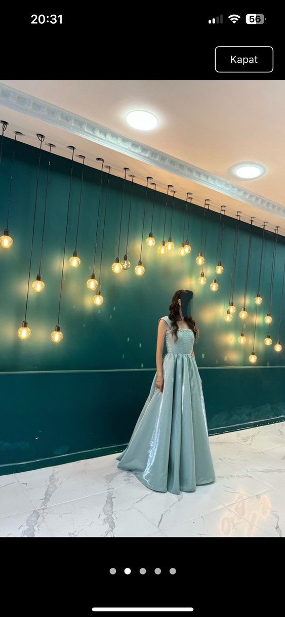 Açık mavi renkte, straplez yaka ve drapeli detaylara sahip uzun abiye elbise. Düğün için modern klasik tarzda, regular fit ve ister kollu ister kolsuz tasarım sunar. Kollar yanlara doğru ayarlanabilir özel tasarım olarak diktirildi.Nişanda ve düğünde giyinebileceğiniz şık bir abiye .Sadece 2 saat giyildi tertemiz sorunsuz istediğiniz beden göre ayarlanabilir.