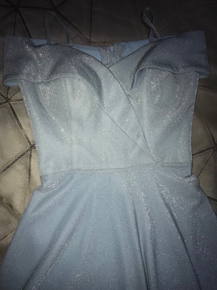Askılı düşük omuz diz altında simli kumaşa sahip esnek genç kız abiye düğün, özelgü, davetler için uygun
