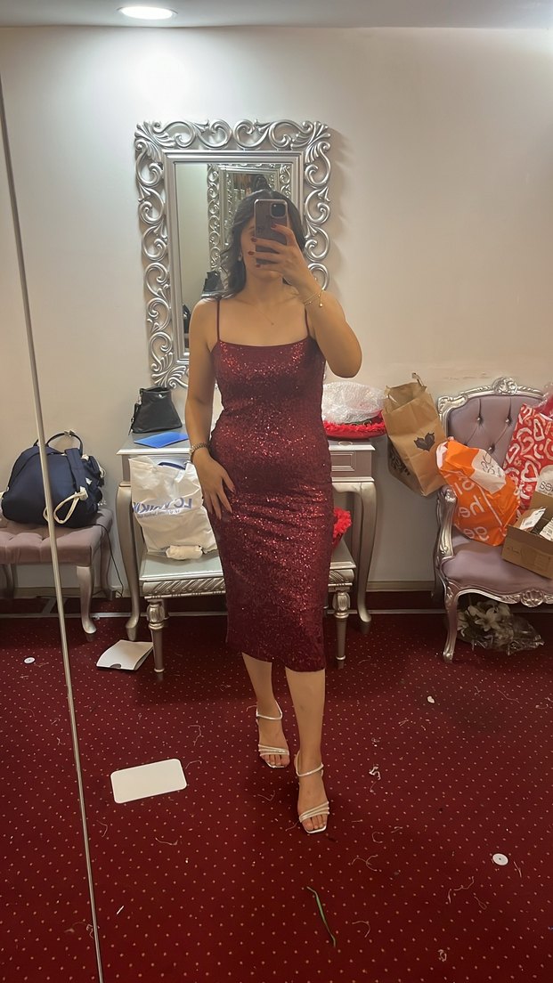 Bordo pul payet yirtmaçli astarli midi boy abiye elbise Ürün sadece bir defa giyildi higbir kusuru yok