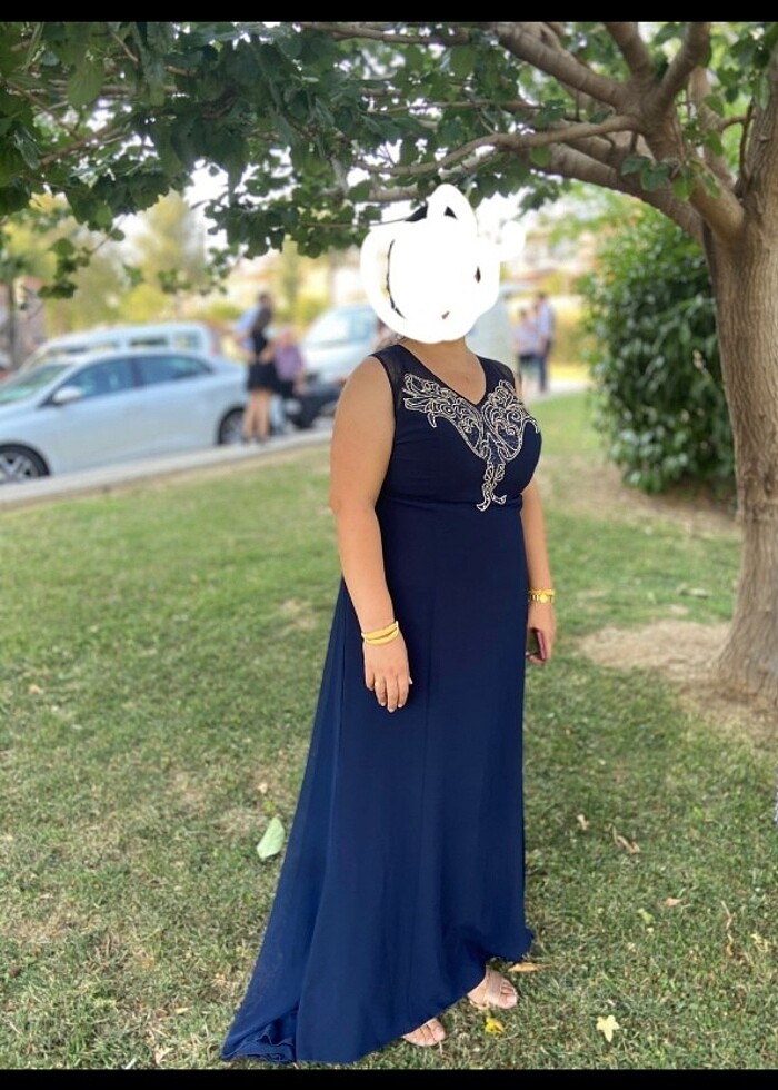 Izmir elden teslim44-46 beden uyumlu lacivert abiye elbise.1 defa giyildi.cocuklarimin sunnetinde kullandım. gogusteki ve sirttaki işlemelerin tamamı taştır. taşların arasi lacivert boncuk ile işlidir.bel kısmından itibaren tül mevcuttur ama istenirse cikarttirilabilir..tul elbiseden biraz daha uzun duruyor kuyruk gibi. kusursuz muhteşem bir elbise.izmirde olanlar deneyip alabilirler