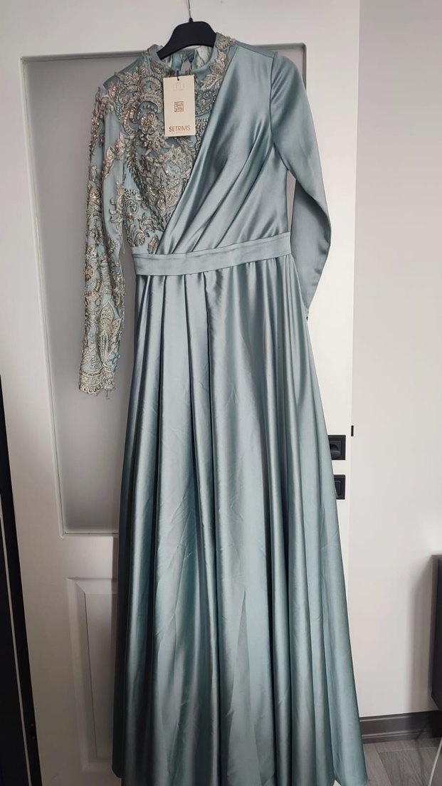 Uzun, abiye elbise, drapeli tasarımı, uzun kollu ve nakış detaylarına sahiptir, düğünler için uygundur. kendi söz merasiminizde bile giyebilirsiniz üstte duruşu çok şıktır. hiç kullanılmadı sıfır ürün etiketi mevcuttur gerçek fiyatı için bana yazın. çok uyguna satıyorum