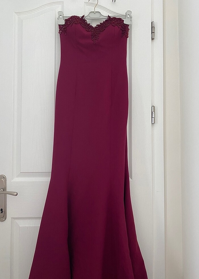 Mürdüm renk, 2 defa kullanıldı, balık modeldir. Arkasında ipleri olduğu için kolay ayarlanabilir , 34-36-38 bedene uygundur.