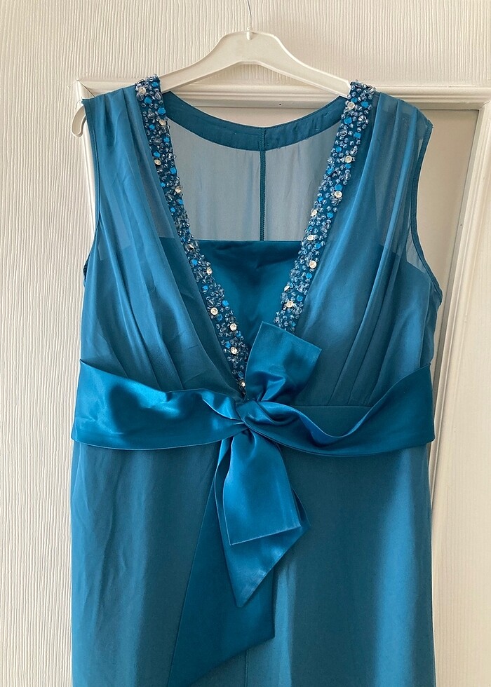 Elbise tül ve saten detaylı çok şık boydan üste duruşunu ekledim