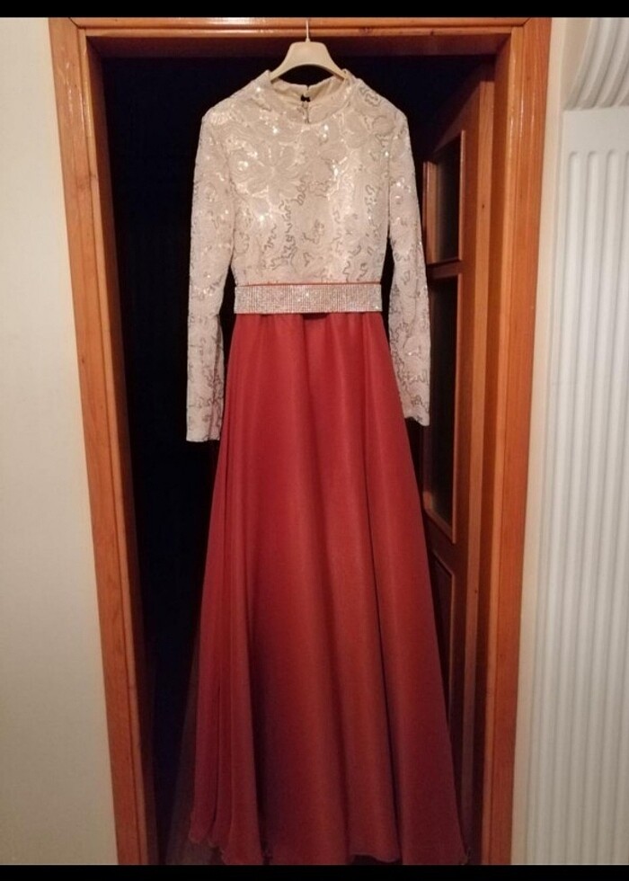 Mezuniyetim de kullanmak için aldığım ve sadece bir kez giydiğim bu elbiseyi satıyorum. Özel günlerinizde de tercih edebilirsiniz. Elbise hakim yakalı, pul payet çiçek işlemeli, uçuşan şifon eteğinin altında hafif kabarık tarlatanı bulunmakta ve iç astarı mevcuttur. Arkası ortadan fermuar kapamalıdır. Kemeri eteğinin parçasındandır. Çantayı ben kombinlemiştim. Yanında hediye ediyorum. Normalde aldığımda 42 bedendi ben 38 beden olarak daralttırdım. Bel kısmı 74 cm, elbise boyu 155cm. Benim boyum 1.69