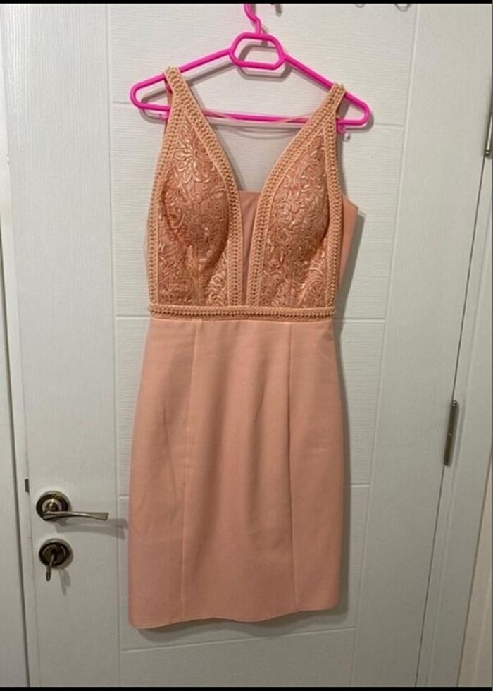 Bir kere giyildi Malum abiye bu bir daha giyilmez Rengi yavru ağzı ya da pudra rengi gibi İşlemeleri görüldüğü üzere çok güzel Keşke olsa bana da satmasam Ama :(