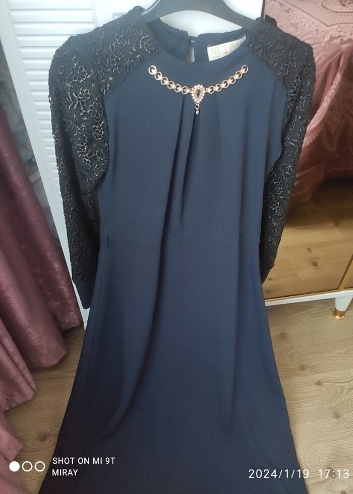 Lacivert abiye elbise bı kaç defa giydim kemeri yok hiç bir deforme yok