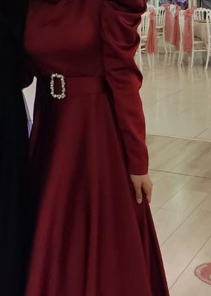 Bordo renk abiye bir kere giyildi 40 beden olarak yazıyor ama tadilat yapıldı 36 bedene uygundur tesettür elbise