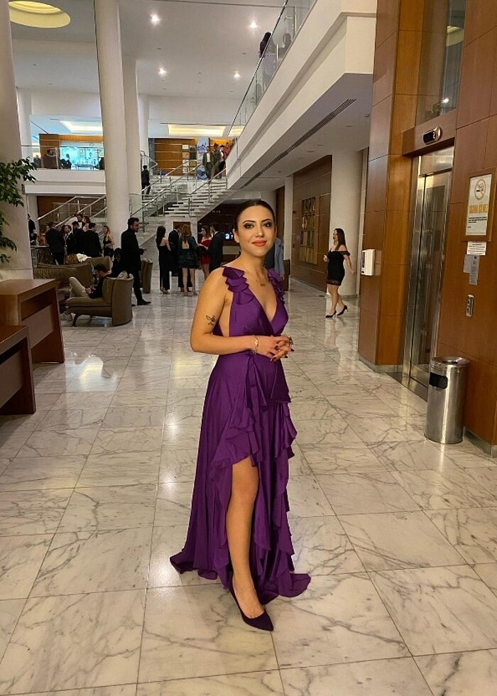 Elbise 1 kere giyilmiştir leke veya deforme yoktur. Kumaşı satendir İgs mağazasından alınmıştır