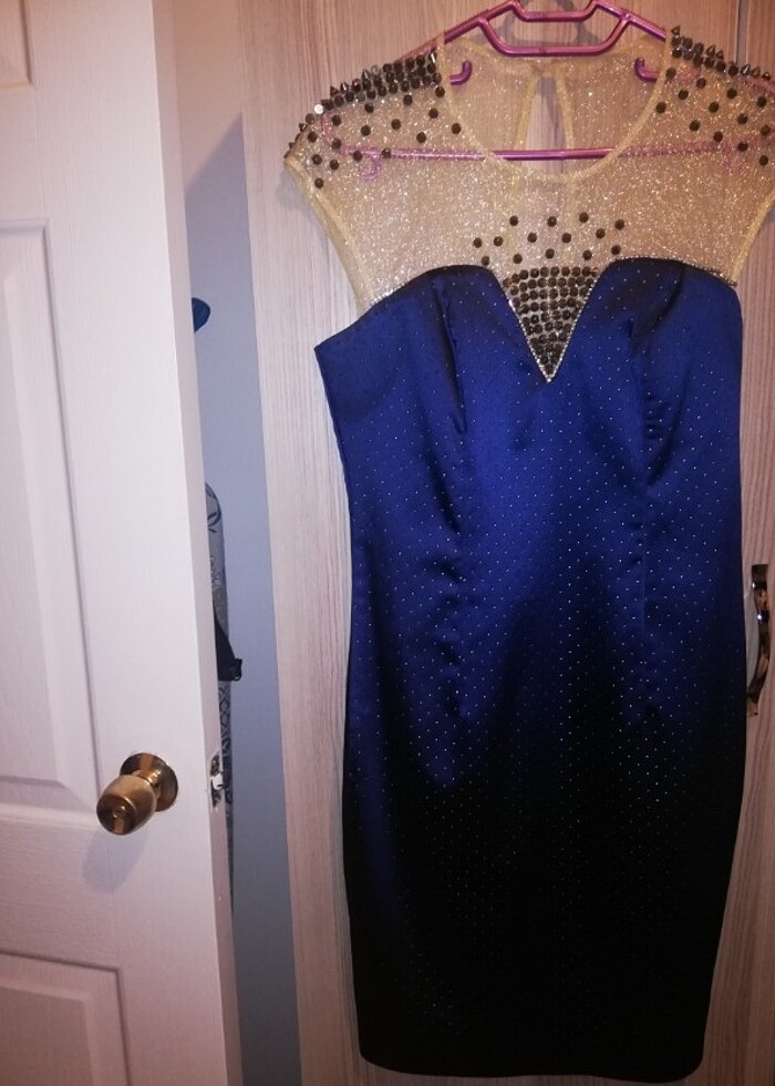 Dışı Saten, içi kumaş diz hizasında astarlı abiye elbisedir. 1 kez giyildi küçük geldiği için satıyorum. Temiz ve hasarsızdır.