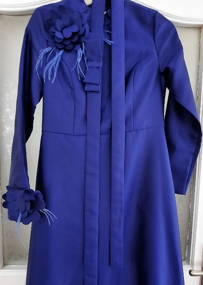 40 beden yaziyor ama 36..38 bedene uygun ..tafta kumaş. Mor ile lacivert arası bir renk.boyu yaptırıldı. 160 boy ile giydim .isteyene ölçü verilir