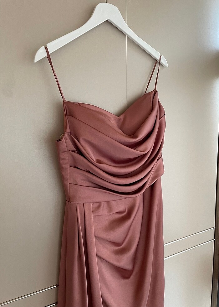1 kez düğünde giydim tekrar giyemeyeceğim için satıyorum. kaliteli bir elbise. yaşadığım ildeki yerel bir abiye mağazasından aldım. bedeni 42 ancak saten olduğu için dar kalıp. 38-40 arası bedene olur.