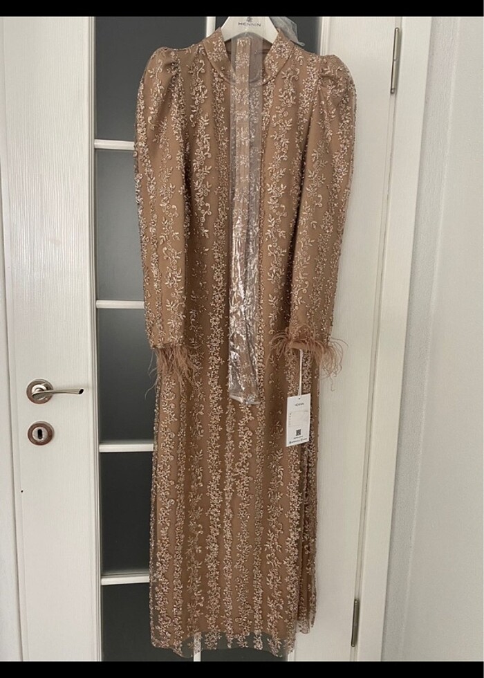 Sorunsuz 1 kez giyildi rengi gold olarak geçiyor fotoğraftan ton farkı olabiliyor ayakkabısı ve şalıda var fiyata dahil değildir
