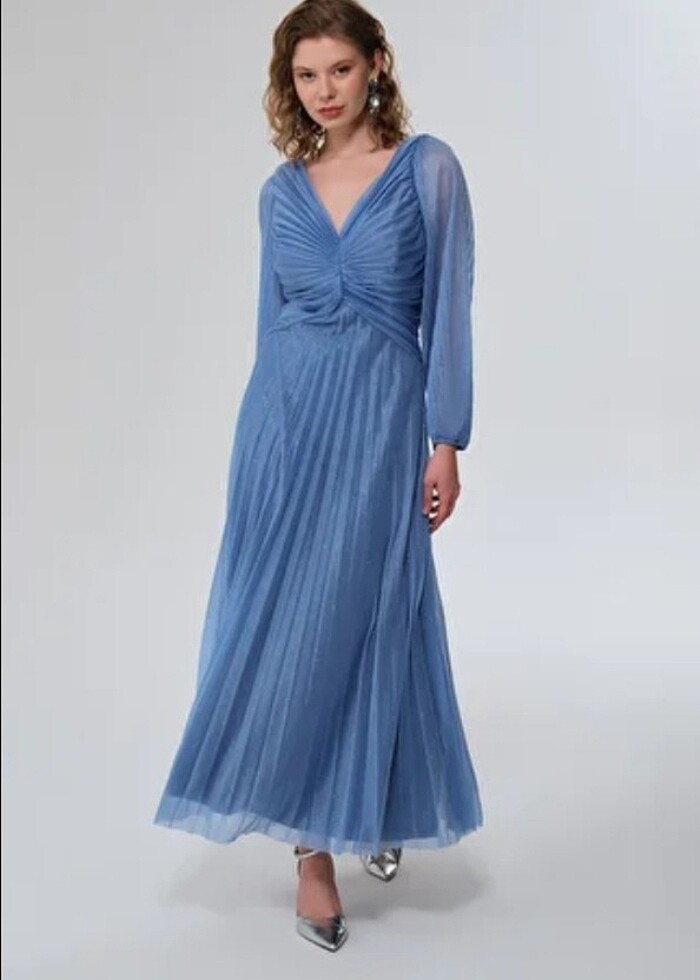 Uzun abiye elbise 1 kez giyildi simli hatası yoktur 42 44 beden uyumlu markası gusto