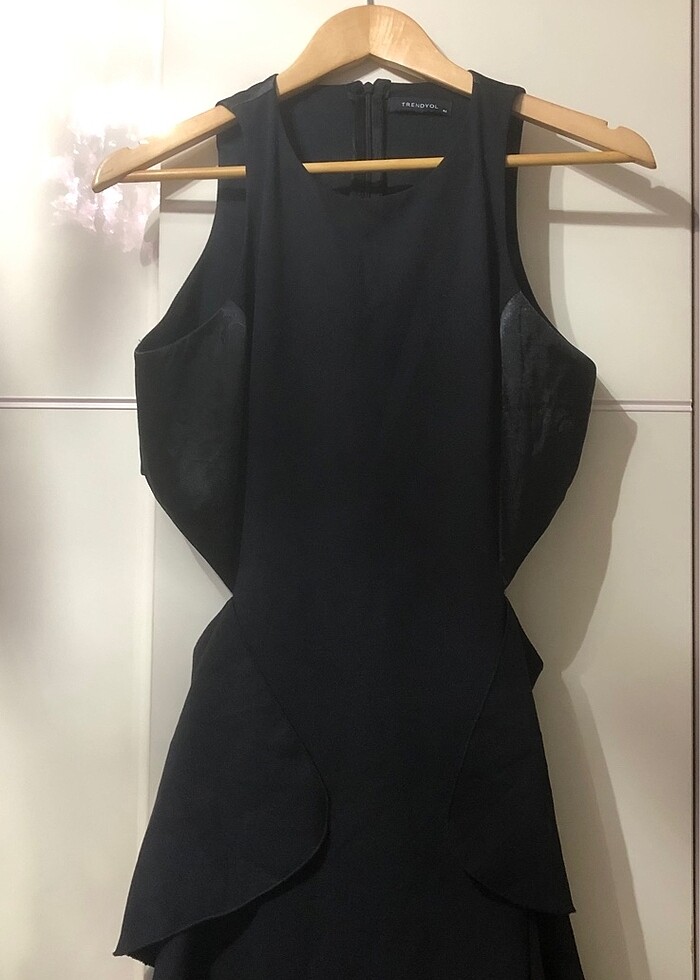 Bel kenarları açık, alt tarafları hareketli çok şık abiye. Çok iyi durumda.