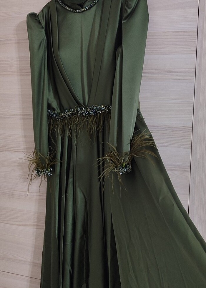 ✔️Zümrüt abiye 44 beden. Bel ölçüsü 40cm. Göğüs ölçüsü 50cm. Elbise ön uzunluğu 140cm. Arka uzunluğu 155 cm. Aldığım fiyat terzi ücreti ile birlkte 5bin TL. Daha fazla indirim talep etmeyin.Şal da yanında gelecek.